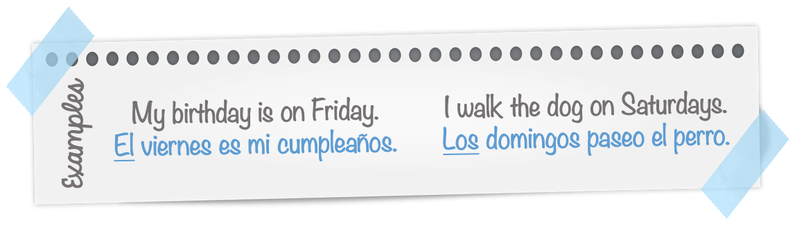 Days of the week typically are preceded by either el or los, depending on whether the day is singular or plural (the names of the weekdays don't change in the plural form).